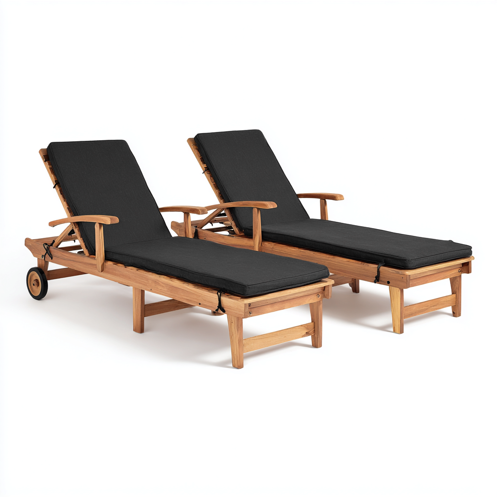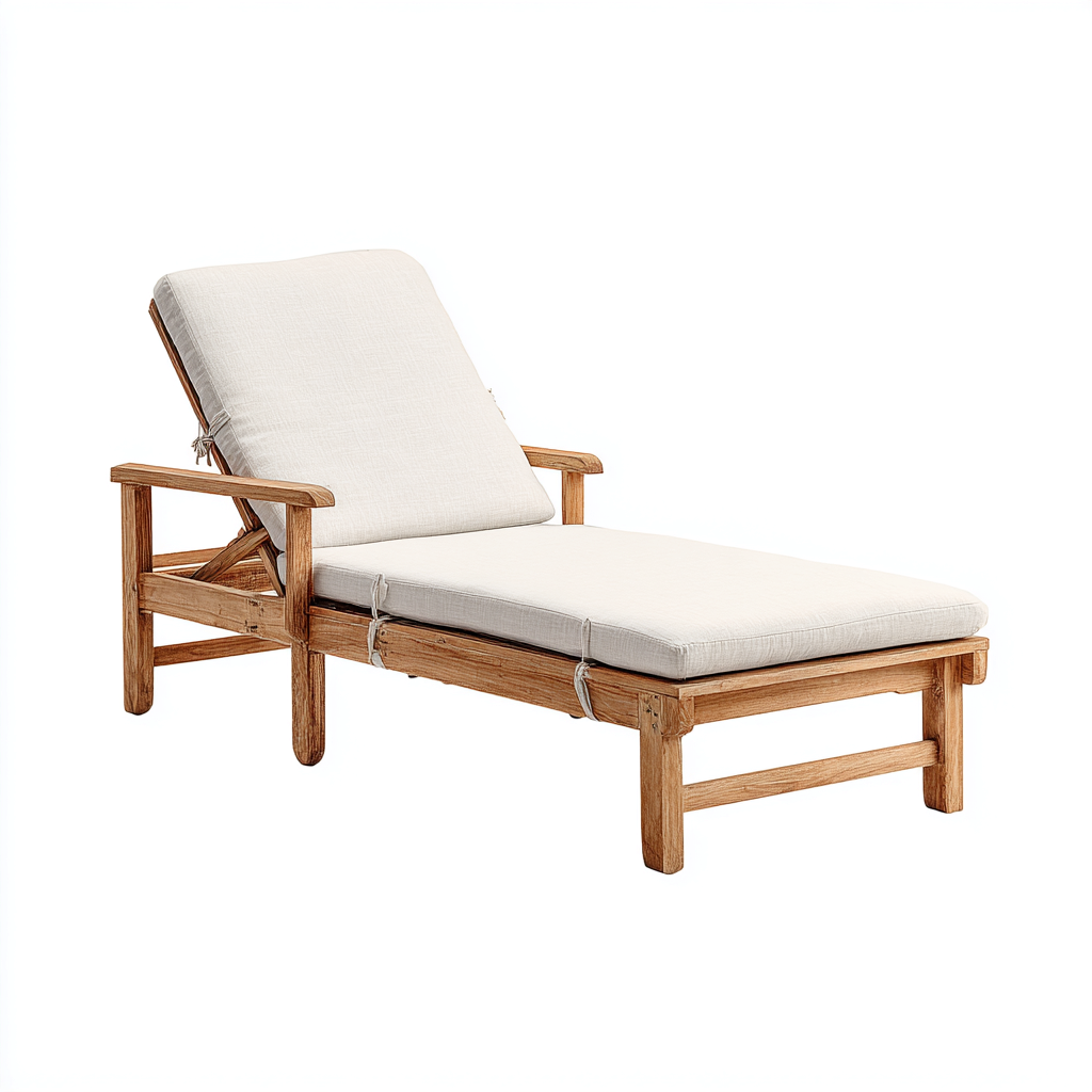Lettino da sole in legno con rivestimento in tessuto 200x75 cm - beige - design naturale per esterni