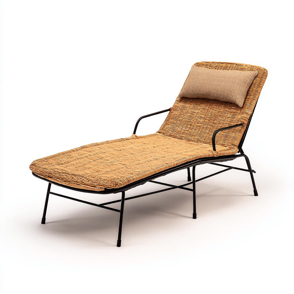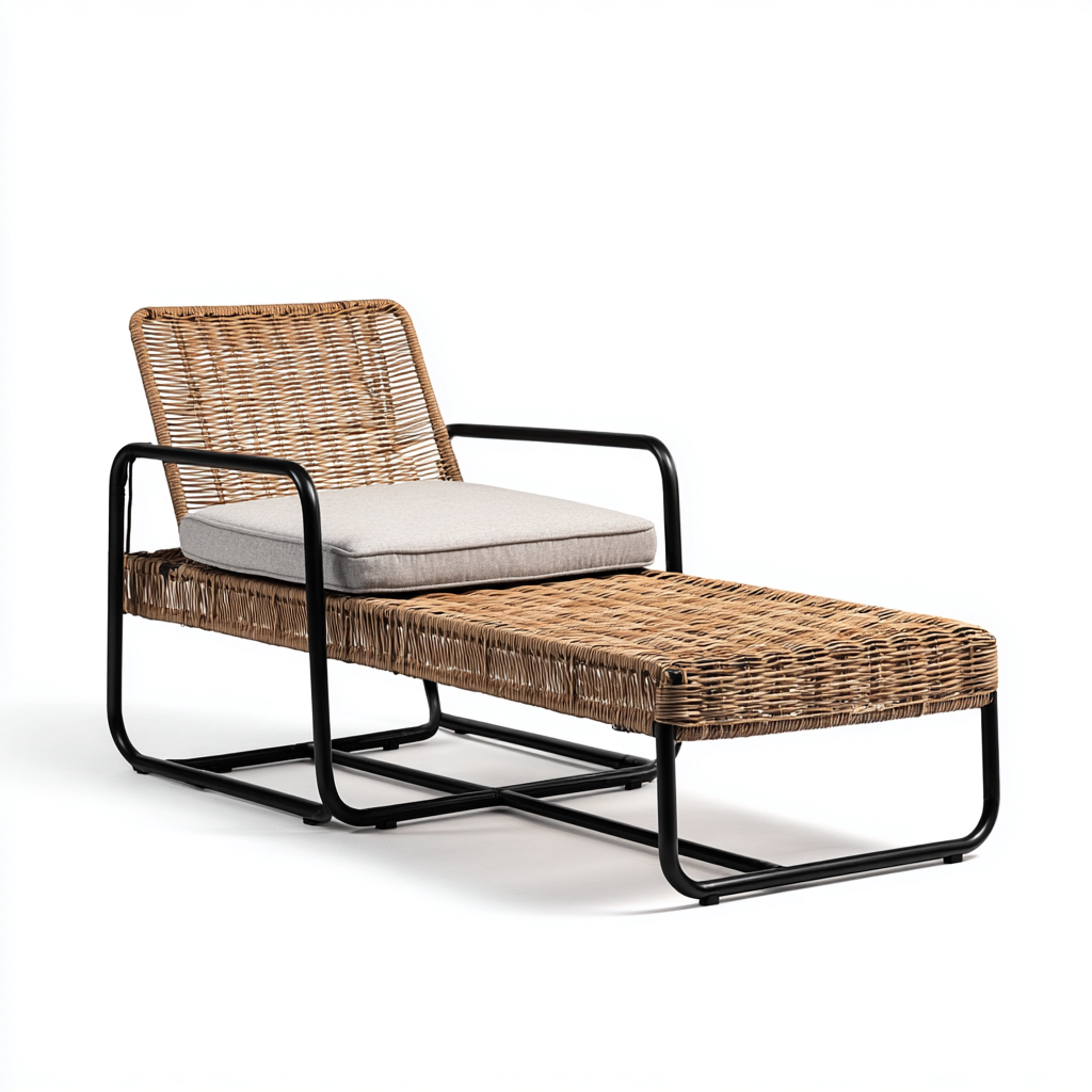 Lettino da sole in metallo con seduta in rattan 190x70 cm - naturale-nero - design essenziale per esterni