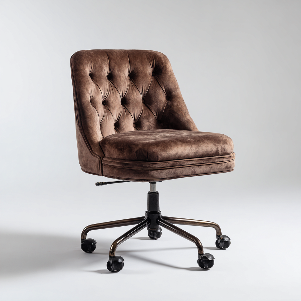Sedia da ufficio velluto metallo 58x60x78-88 cm - Marrone - Sedia girevole design classico imbottita
