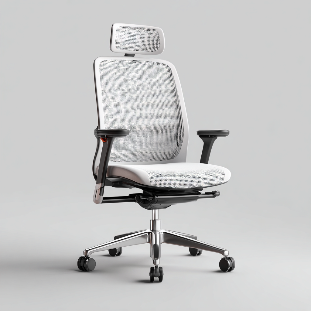 Sedia da ufficio ergonomica in rete con poggiatesta regolabile 65x65x118-128 cm - bianco - design moderno con braccioli