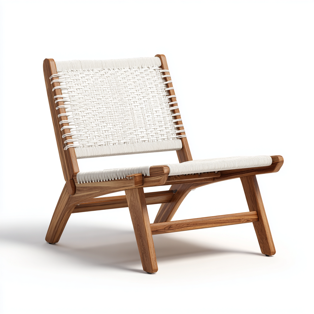 Sedia da giardino in legno e corda intrecciata 68x72x78 cm - naturale-bianco - seduta lounge per esterno design contemporaneo