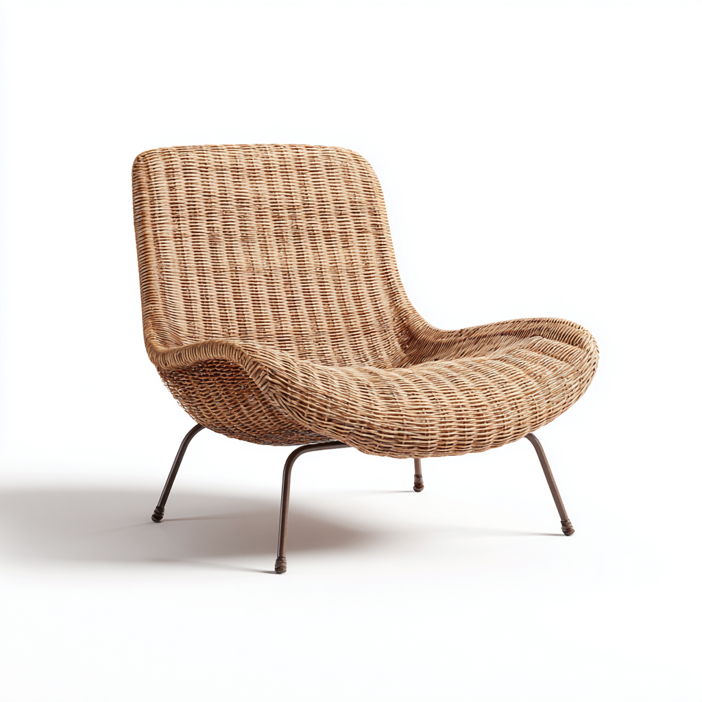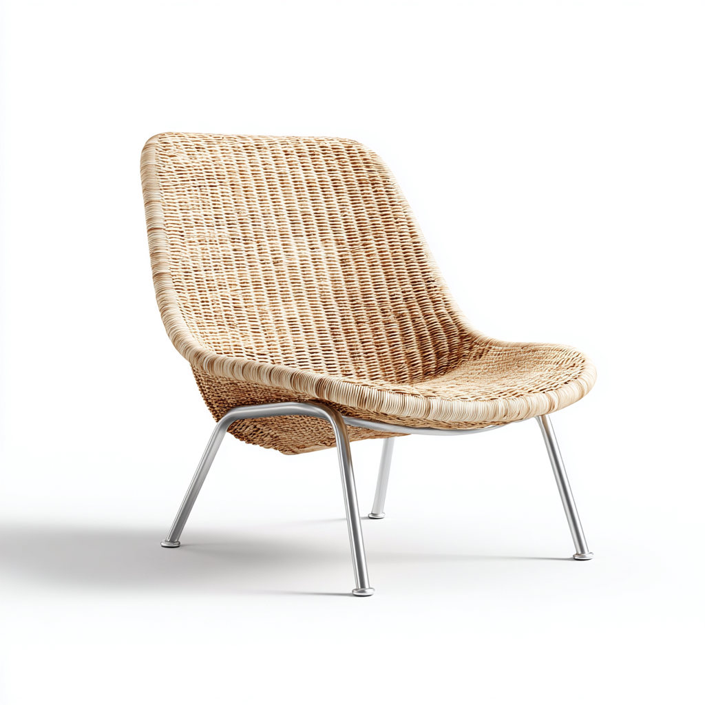 Sedia da giardino in rattan intrecciato con struttura in metallo 72x70x78 cm - naturale-argento - seduta avvolgente per esterno design contemporaneo