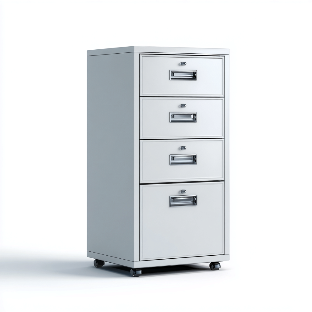 I cassetti permettono una suddivisione pratica di documenti e accessori da ufficio. Le maniglie integrate assicurano un utilizzo agevole, mentre le ruote consentono di spostare l'armadio con facilità all'interno dell'ambiente lavorativo.