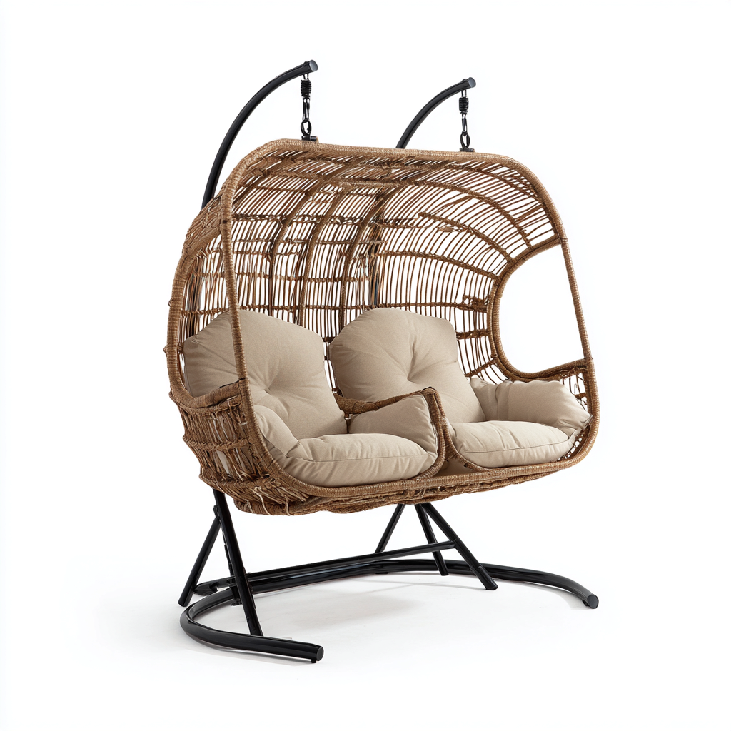 Questo dondolo da giardino sospeso è progettato per creare un'area di relax accogliente in giardini, terrazze e spazi esterni coperti. La seduta avvolgente sospesa offre un movimento oscillante delicato, ideale per momenti di riposo e comfort all'aria aperta.