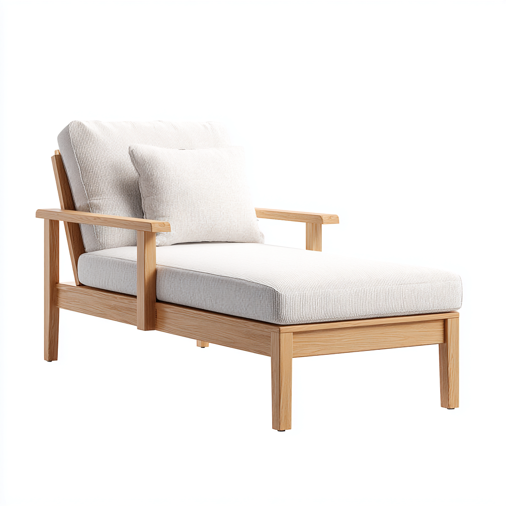 Questo lettino da sole è pensato per offrire un'area di relax elegante e funzionale in giardini, terrazze e spazi outdoor. La struttura in legno e la seduta imbottita permettono di distendersi comodamente, adattandosi a momenti di riposo all'aria aperta.