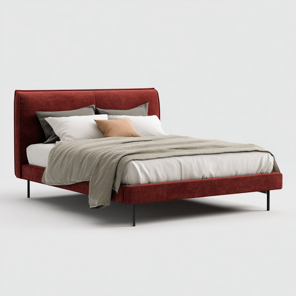 Questo letto matrimoniale è pensato per arredare la camera da letto con una presenza equilibrata e raffinata. Le forme morbide e la struttura imbottita contribuiscono a creare un ambiente confortevole e ordinato, adatto a spazi contemporanei.