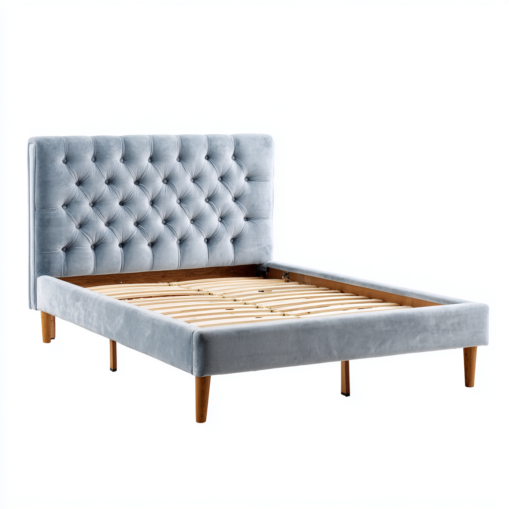 La testiera imbottita offre un appoggio confortevole durante il riposo. La base del letto garantisce un sostegno affidabile al materasso e una distribuzione equilibrata del peso, adatta all'uso domestico quotidiano.