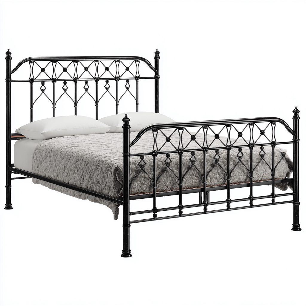 Questo letto matrimoniale è progettato per offrire una struttura solida e un'estetica decorativa all'interno della camera da letto. Il design in metallo con linee lavorate valorizza l'ambiente e si adatta a contesti classici e tradizionali.
