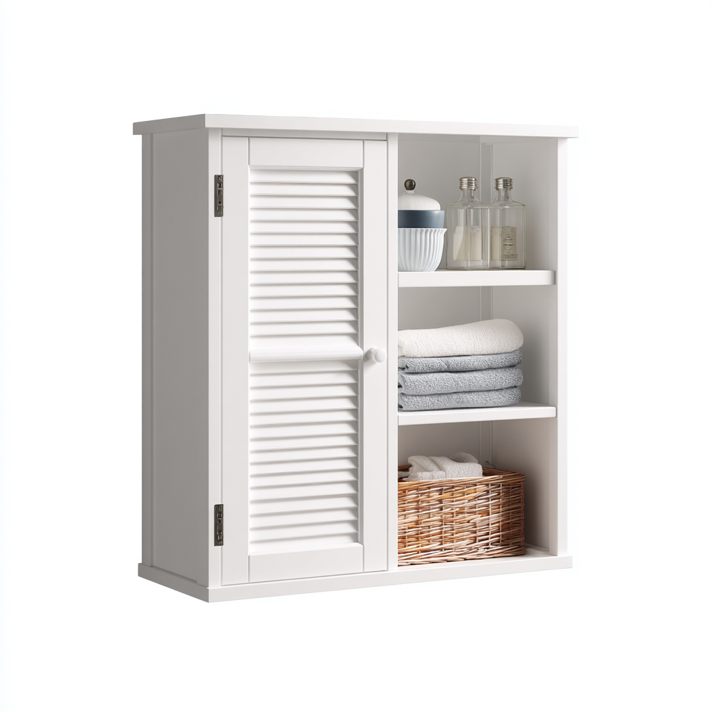 Questo mobile bagno pensile è progettato per offrire una soluzione pratica di contenimento senza occupare spazio a pavimento. La struttura compatta lo rende adatto a diversi ambienti bagno, contribuendo a mantenere ordine e funzionalità.