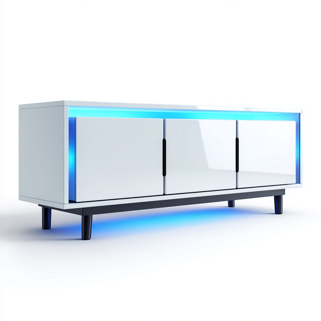 Questo mobile TV è pensato per arredare il soggiorno con uno stile contemporaneo e ordinato. La struttura allungata e le superfici pulite offrono una base funzionale per il televisore, valorizzando allo stesso tempo l'ambiente grazie all'illuminazione integrata.