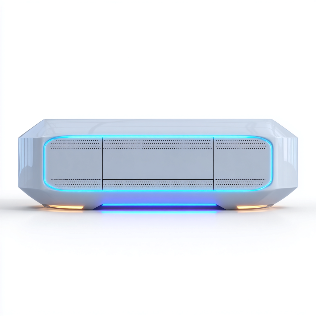 Questo mobile TV si distingue per un design futuristico e compatto, pensato per ambienti moderni e tecnologici. La forma pulita e le linee arrotondate lo rendono ideale come base per televisori e dispositivi multimediali in soggiorno o zona entertainment.