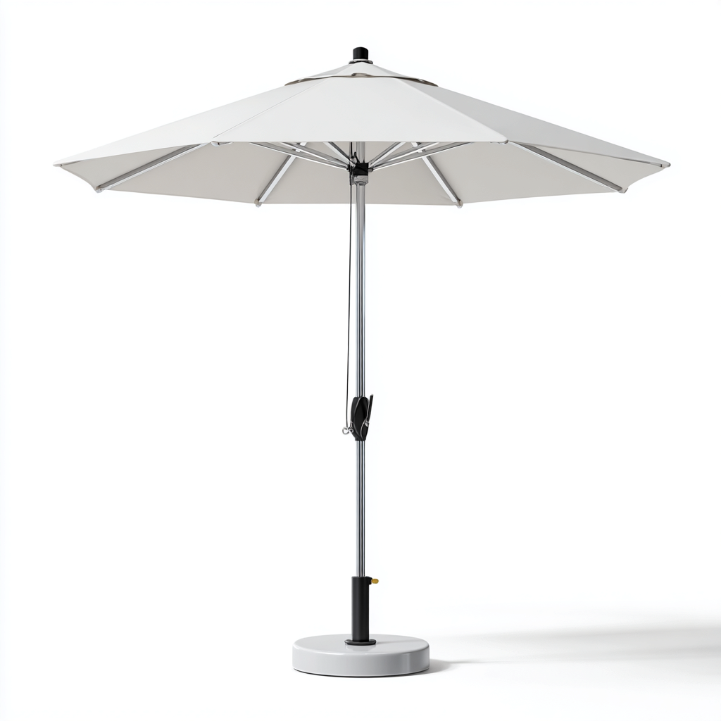 La struttura centrale è realizzata in metallo con finitura resistente, studiata per assicurare stabilità e durata nel tempo. Le stecche di supporto distribuiscono uniformemente la tensione del telo. La copertura è in tessuto di colore bianco, adatta all'utilizzo in ambienti esterni.