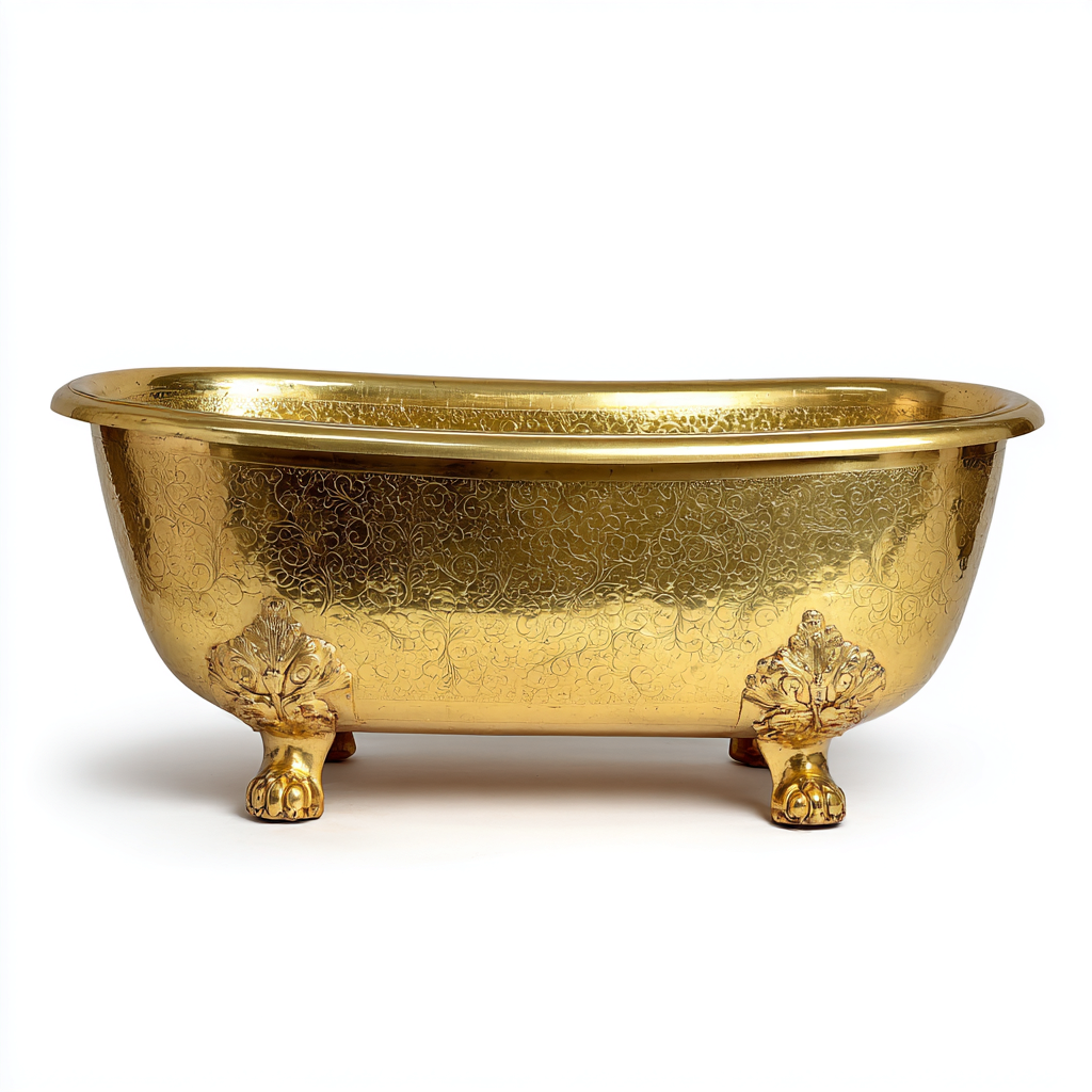 Realizzata in metallo con finitura color oro, la superficie presenta una lavorazione decorativa uniforme. Il trattamento esterno è progettato per garantire solidità strutturale e mantenere nel tempo l'aspetto luminoso e decorativo.